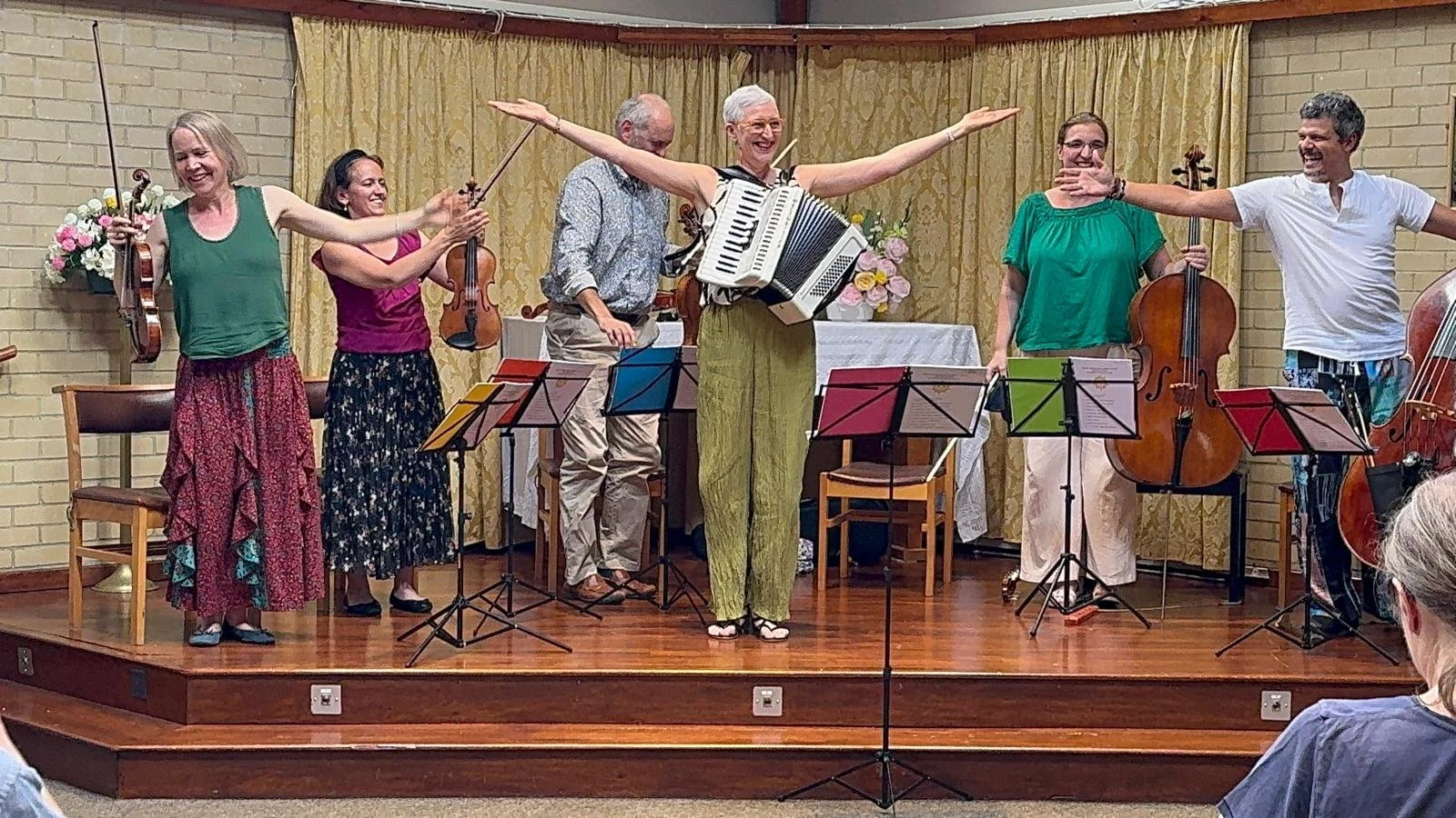 Six of our expert musicians proceeded to entertain with a varied programme, covering everything from Mendelssohn to Singing in the Rain, Leroy Anderson’s Jazz Pizzicato and a particularly lively rendition of Washington County featuring banjo! Everything was expertly arranged by Anna Cooper, apart from the Piazzolla piece, which Pavlos orchestrated.